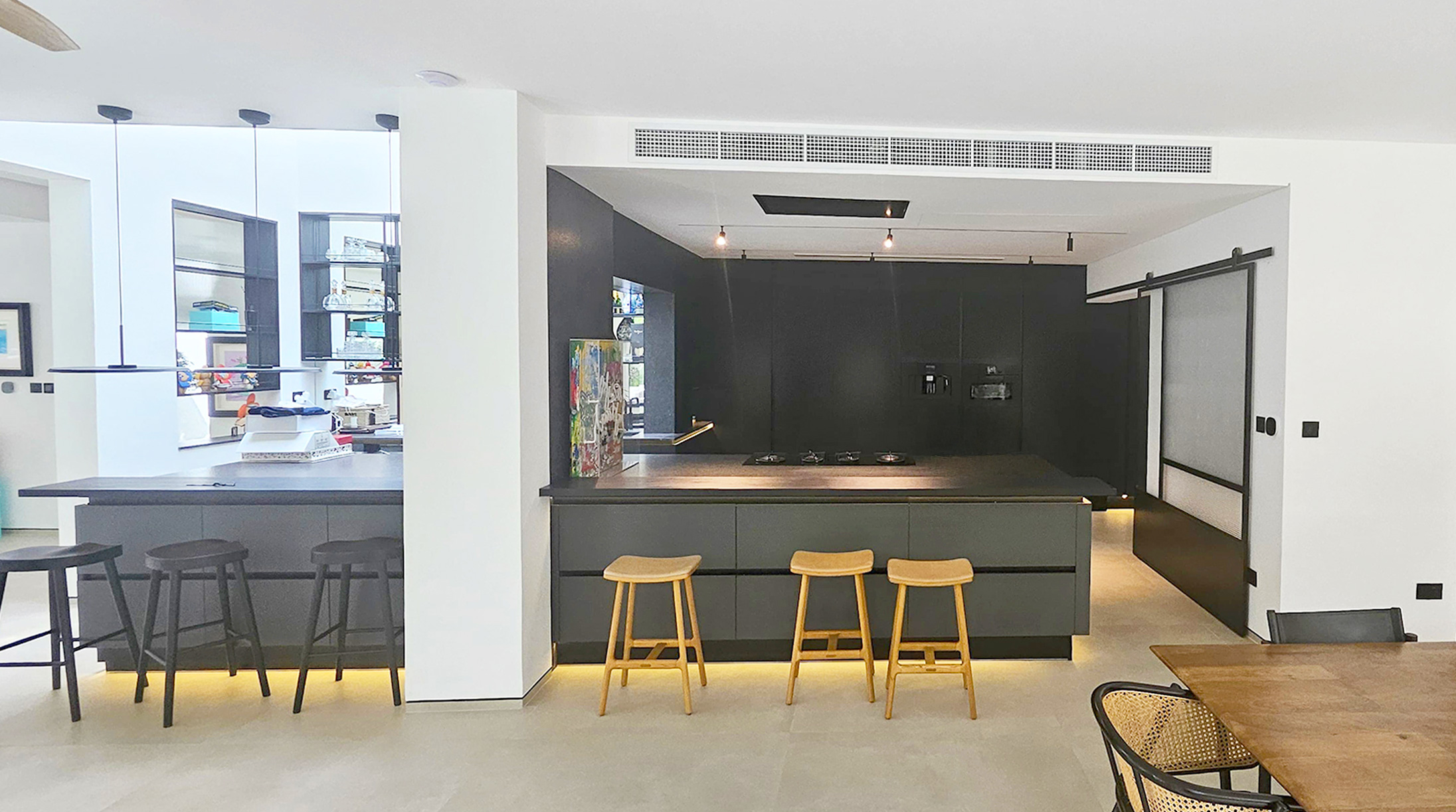 A sleek kitchen with warm tones and premium finishes — smart storage and modern cabinets paired with a stylish bar unit for the ultimate space to unwind.